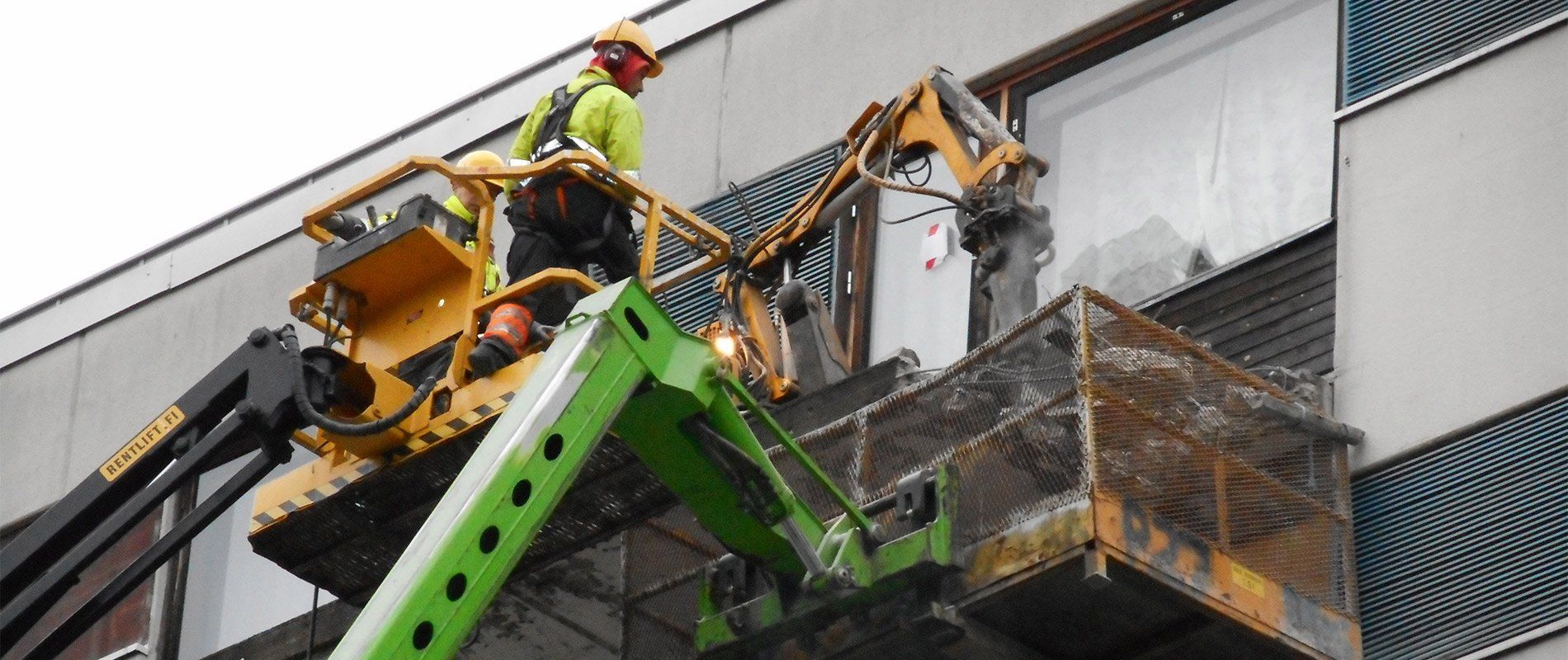 Laajalla kalustolla ja osaamisella toteutamme kaikki rakennusten saneeraustöihin liittyvät purkutyöt